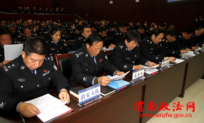 会上,县公安局长吴新利作了题为《追赶超越,争创一流,在更高起点上实现大荔公安再跨越》的工作报告。回顾总结2016年度大荔公安工作呈现出“五个亮点”,这就是:刑事发案下降,社会治安持续好转;打击破案力度增强,命案全破,“秦盾亮剑”打出了声威;警务改革结出硕果,农村治安分级管理模式获省、市公安改革优秀项目奖;队伍面貌发生根本性转变,年度考评名列全市第一,被省公安厅确定为正规化建设“县级示范单位”;整体工作取得历史性突破,综合目标考评全市夺冠,12项重点工作排名全市第一,获“全省优秀公安局”和“全省执法质量优秀单位”荣誉,被评为“全市重点工作先进单位”、“全县经济社会发展突出贡献单位”和县委表彰的先进党委。在总结上年工作,分析当前社会治安面临新形势、新特点和广大群众对公安机关的新要求、新期待基础上,就2017年全县公安工作提出新的要求和具体部署。2017年公安工作总体思路是:紧紧围绕“追赶超越”总目标,按照“迎接十九大,忠诚保平安”总要求,重点工作冲一流,亮点工作创品牌,整体工作再超越。争当陕西公安排头兵,努力冲击全国先进,确保公众“安全感”和人民群众“满意度”双提升。具体抓好四个方面工作:一是守住国家安全、民生安全、执法安全 “三条线”,坚决堵塞漏洞,构建全覆盖的安全“防火墙”。二是打好专业、民生、信息三个硬仗,全力攻坚克难,打出人民群众的“安全感”。三是密织街面防控、分级管理、视频监控、治安管控“四张网”,扎实精耕细作,构筑立体化治安防控体系“升级版”。四是围绕业务素质过得硬、改革创新叫得响、“窗口”服务暖民心、队伍作风形象好“四个目标”,严格规范管理,提升冲击一流的“软实力”。