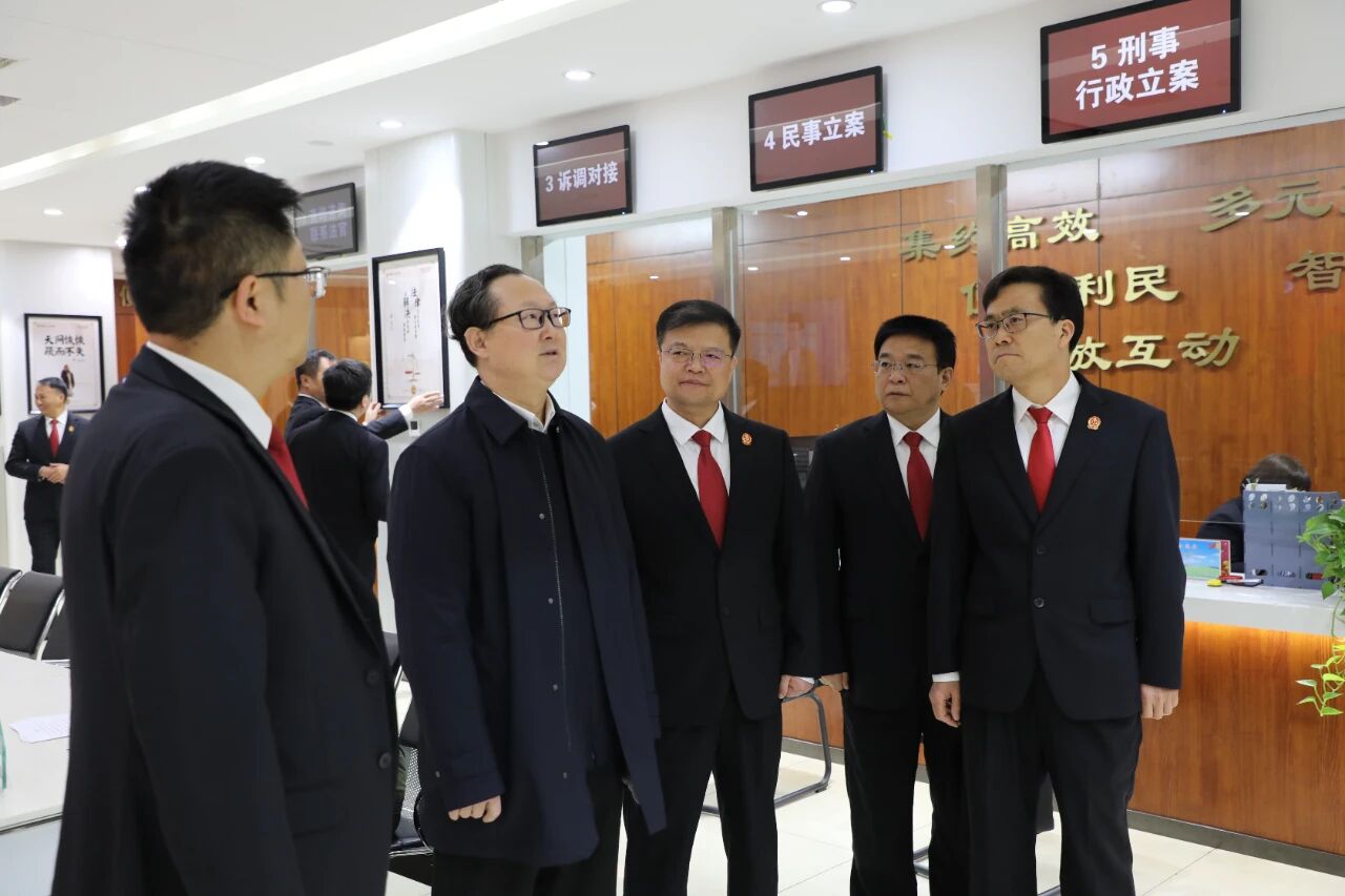 渭南中院党组书记、代院长赵进轩,韩城市法院党组书记、院长徐天宝参加调研。