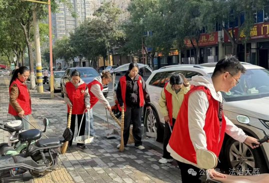 活动期间一方面通过在公共广场设置宣传阵地、发放宣传手册等形式,直观展示垃圾分类意义、分类方法及环保价值。另一方面为凸显“以身作则、率先垂范”的责任担当,组织全体干部职工参与道路卫生清洁行动。干部职工携带扫帚、簸箕、垃圾袋等工具,重点对辖区主干道及社区周边道路的生活垃圾、落叶杂物、卫生死角进行全面清理。