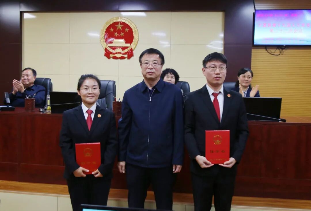 经人大常委会会议审议和表决,全票通过了段佳辰、马健同志为大荔县人民法院审判员的决定,县人大常委会主任张红林为两名同志颁发了任命书。
