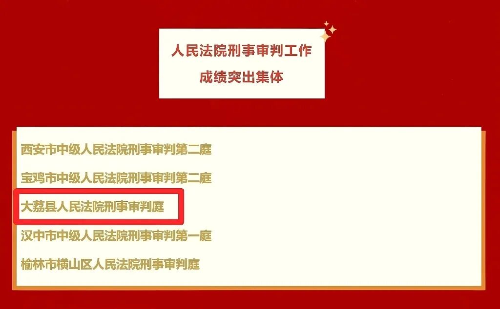 11月13日,第八次全国刑事审判工作会议在北京召开。会议通报表扬了人民法院刑事审判工作成绩突出集体和个人。其中,大荔县人民法院刑事审判庭凭借扎实过硬的审判质效、担当有为的司法作风,光荣获评“人民法院刑事审判工作成绩突出集体”。