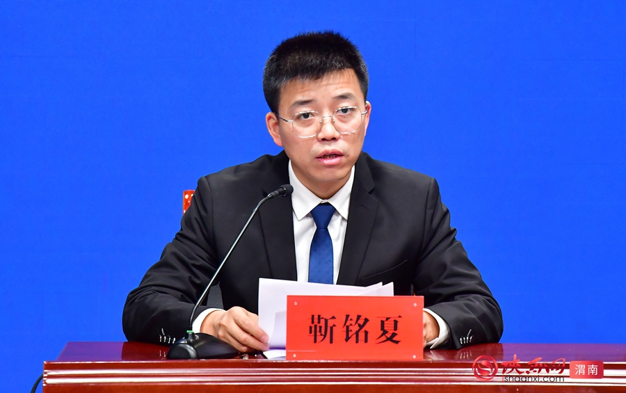 渭南市委宣传部副部长靳铭夏主持发布会。记者 罗娜 摄