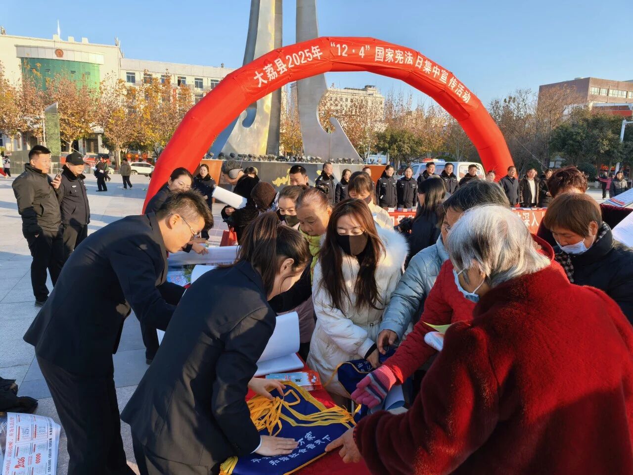 2025年12月4日是第十二个国家宪法日,为进一步加强宪法宣传教育,大力弘扬宪法精神,大荔县人民检察院组织干警在中心广场开展集中法治宣传活动,让宪法知识走到群众身边、走进群众心里。