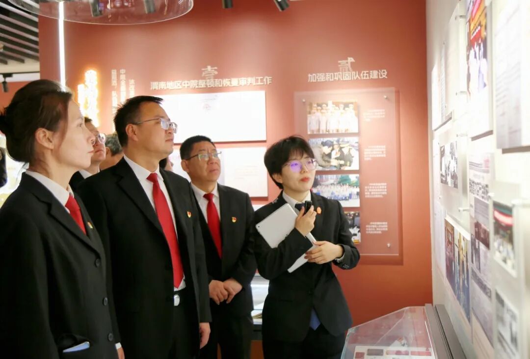 参与活动的党员干警参观了渭南中院院史馆,一幅幅珍贵图片、一件件历史实物、一段段翔实文字,生动地展现了渭南法院在砥砺奋进中的发展历程与辉煌成就。干警们在厚重历史中感悟法治精神传承,在时代变迁中体悟始终如一的司法信仰。