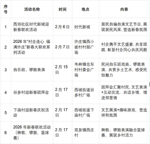 活动内容:汇聚歌舞、戏曲、语言类等优质节目,打造高品质群众春晚,用精彩演出点燃新春热情。