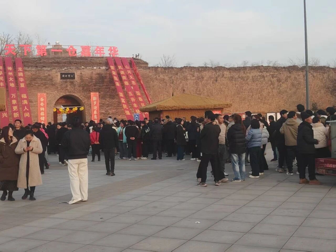 晨光初露,丰图义仓便迎来络绎不绝的游人。“天下第一仓”的盛名吸引着八方来客,景区入口人头攒动,检票口排起长龙,欢声笑语此起彼伏。游客们扶老携幼、呼朋引伴,或驻足品读仓城历史,或在古仓前拍照打卡,每一处角落都满是兴致勃勃的身影,解说声、赞叹声、孩童的嬉闹声交织,处处洋溢着热闹的气息。