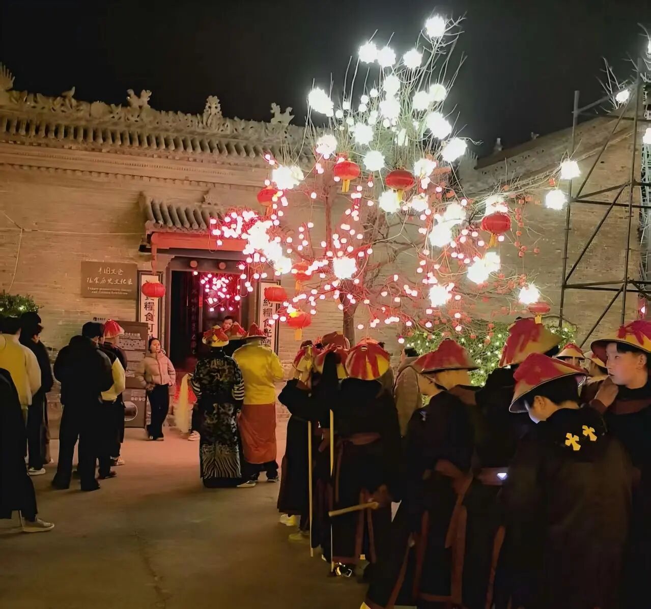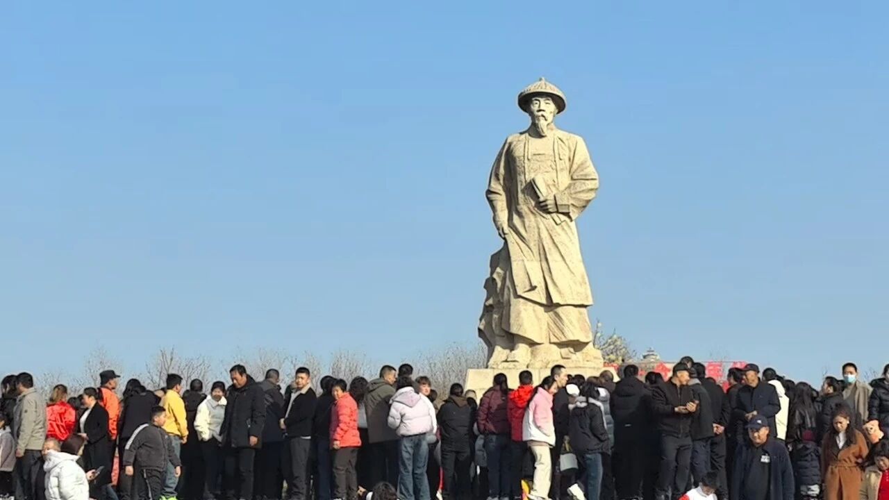 白日里的丰图义仓游人如织、盛况空前,阎敬铭雕像周边更是始终被游客围得水泄不通,往来人群摩肩接踵。有人静静凝望雕像,缅怀先贤功绩;有人携家人合影留念,定格这份历史传承。非遗展示区、特色市集前也人头攒动,游客们挑选年货、品尝美食,让肃穆的古仓之地,交融着浓郁的烟火气与厚重的历史感,年味愈发醇厚。